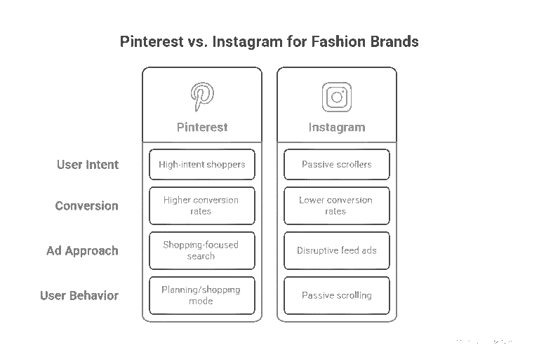 Unlike Instagram, where users scroll passively, Pinterest users are in “planning” or “shopping” mode. They’re closer to a buying decision, which results in higher conversion rates and lower cost-per-click (CPC).